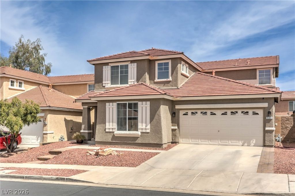Check out this beautiful 5-bedroom, 3-bath gem with a 2-car garage, nestled in a highly desired neighborhood in Henderson! Located on a quiet street with no home directly across, you'll love the added privacy and extra parking. Enjoy stylish luxury vinyl plank flooring downstairs, upgraded baseboards, cozy fireplace and brand new carpet throughout. The kitchen features stainless steel appliances, a sleek single-basin stainless steel sink, and ample cabinet space. Bright, airy, and finished in neutral tones, this home feels warm and inviting from the moment you walk in. The backyard offers real grass and mature fruit trees, all designed for easy maintenance?perfect for relaxing or entertaining. Conveniently located near Boulder Creek Park, scenic walking trails, and easy freeway access. Meticulously maintained and exceptionally clean, this move-in ready home is truly a must-see!
